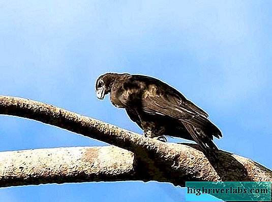 Dravý čierny vták. Je zreteľne viditeľný. Konce krídiel, v oblasti primárnej letky sú biele. Táto vlastnosť farby operenia je obzvlášť viditeľná, keď si narovnáva krídla.